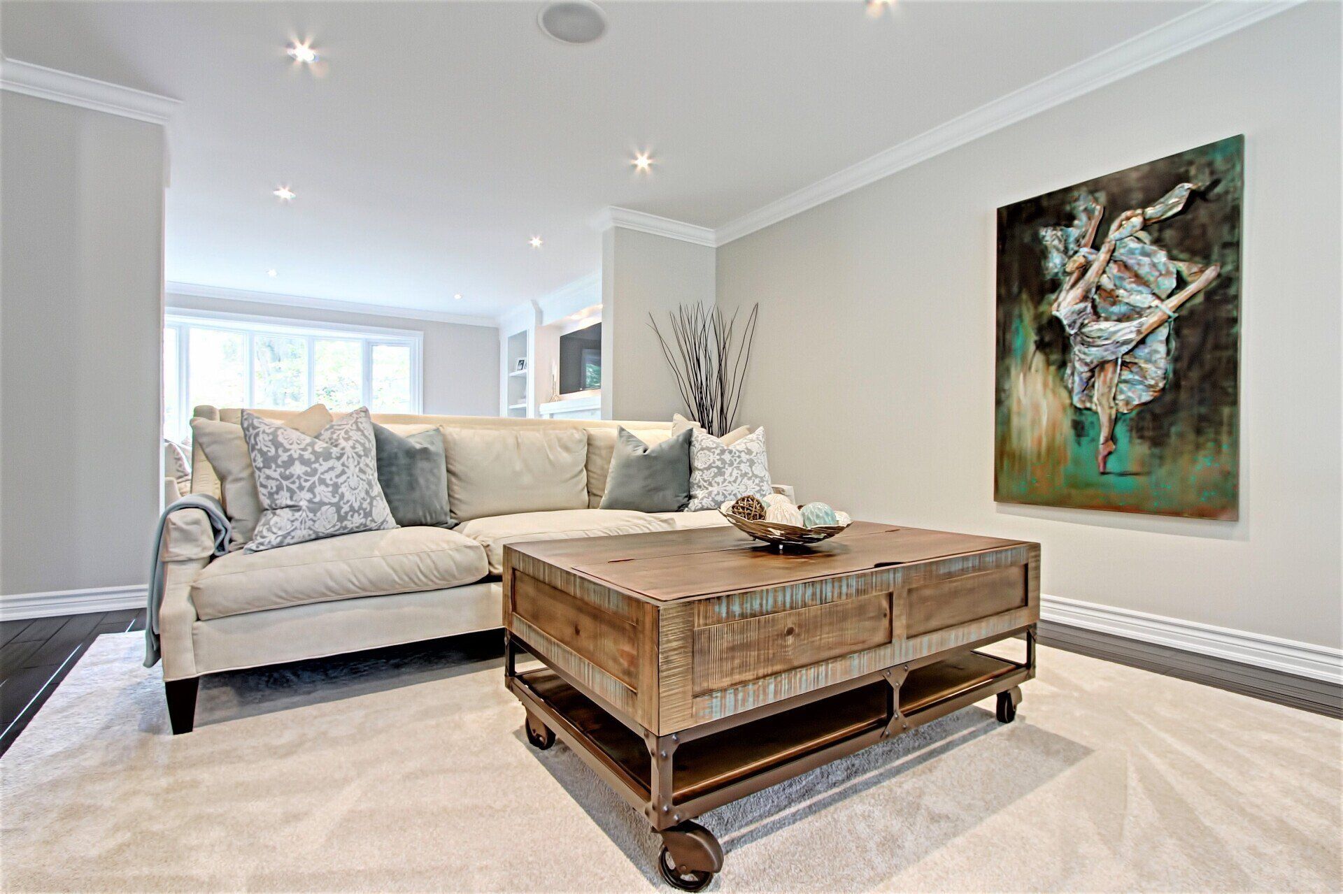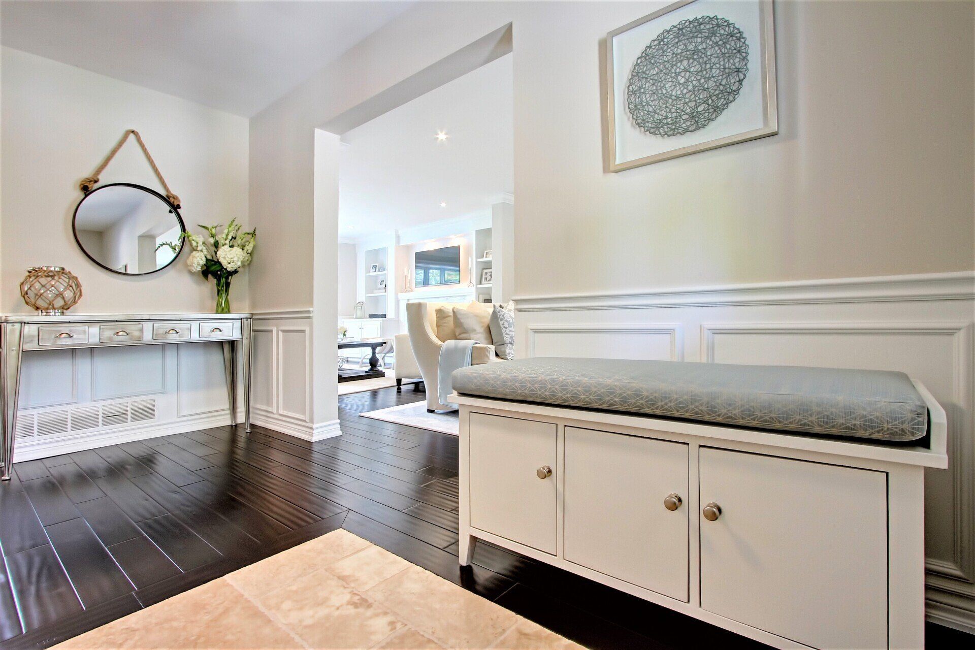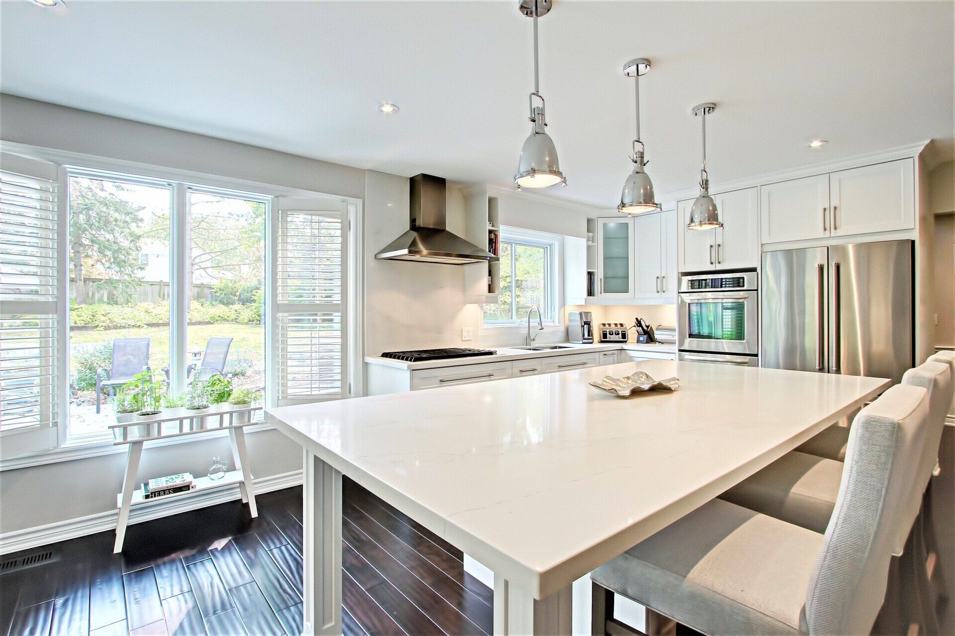 This stunning renovation in Oakville required the old house to be completed gutted and reconfigured to create a more open, spacious and modern home. We combined the kitchen and dining room to create a large eat in kitchen, and made the doorway between the hall and living room wider to open up the space. With a calm, bright colour palette, warm wood and lots of textures this house has transformed into a warm inviting home. Photos: Houses By Hilary